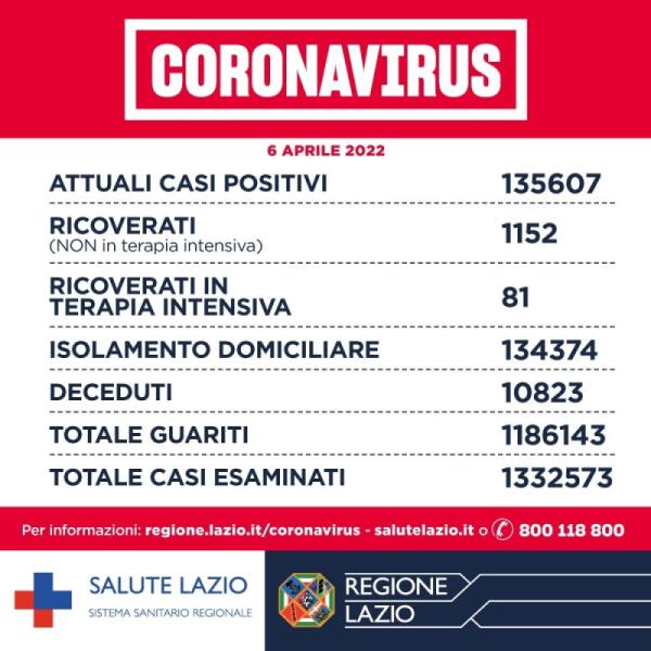 7.782 nuovi casi di positività al Covid oggi nel Lazio, 9 i decessi. Rapporto tra positivi e tamponi al 14,7%.
