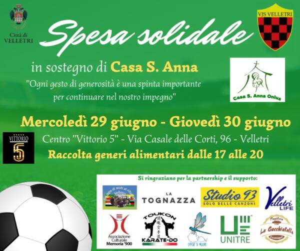 Un punto di raccolta per generi alimentari di prima necessità: il 29 e il 30 giugno la Vis Velletri promuove un aiuto per Casa S. Anna