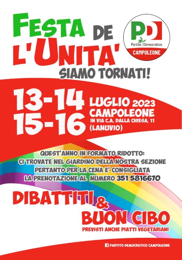 Questo fine settimana "Festa dell'Unità" a Campoleone a cura del circolo locale del Pd.