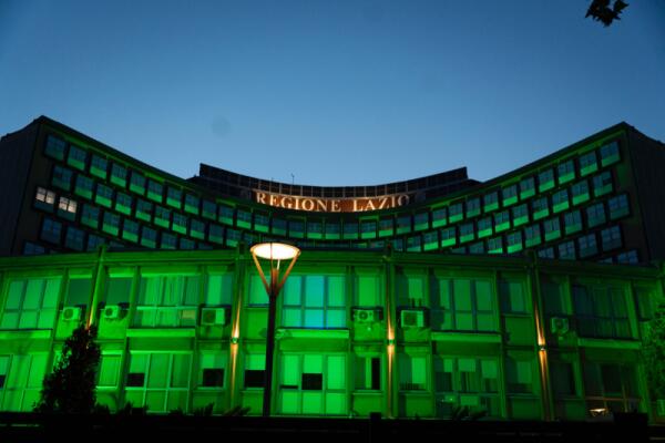 Giornata Mondiale dell'Ambiente, la sede della Regione Lazio illuminata di verde.