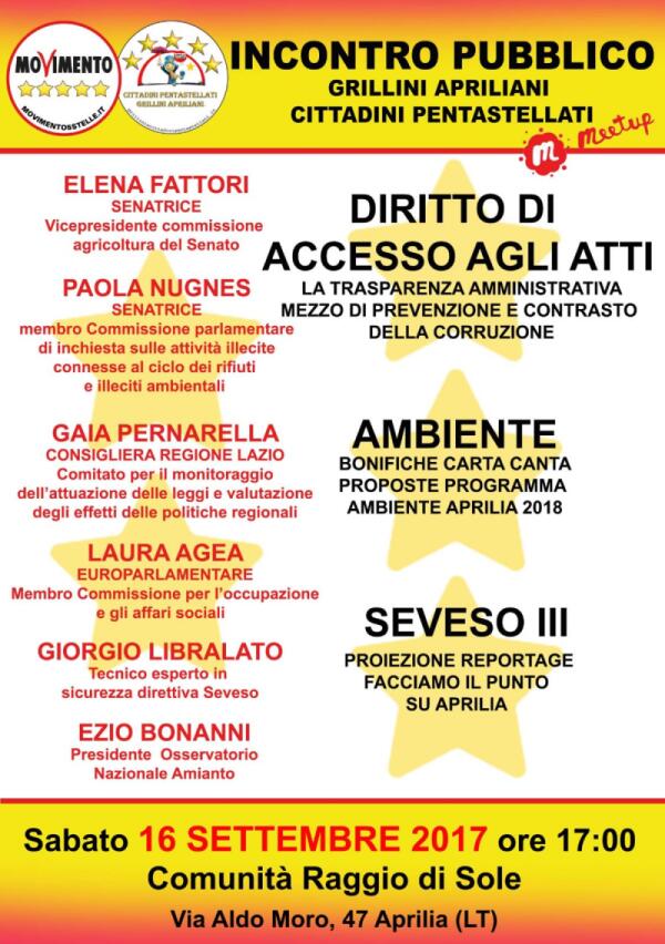 Situazione ambientale e salute pubblica: incontro promosso dai Grillini Apriliani.
