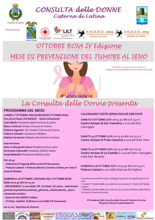 Torna a Cisterna l’Ottobre Rosa: visite gratuite per la prevenzione oncologica