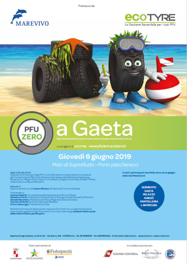 A Gaeta fa tappa “PFU Zero sulle coste italiane”: questo giovedì raccolta straordinaria di pneumatici in mare.