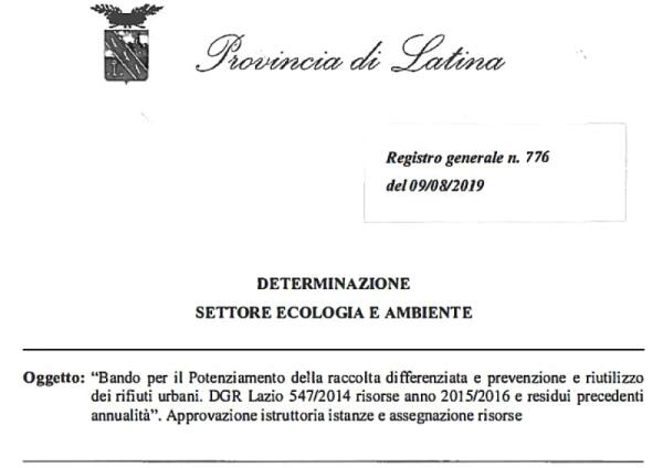Dalla Provincia oltre 3 milioni di euro per il potenziamento della raccolta differenziata a Latina.