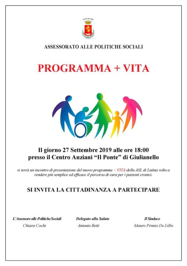 Programma “+VITA” promosso dalla Asl: oggi a Giulianello di Cori un incontro informativo.