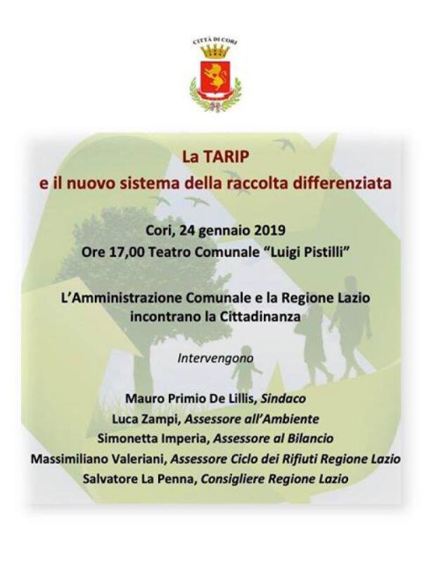 La TARIP e il nuovo sistema della raccolta differenziata: incontro al Teatro Comunale di Cori.