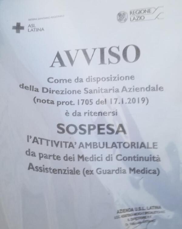 Guardia Medica ad Aprilia, "Sospese le visite ambulatoriali".
