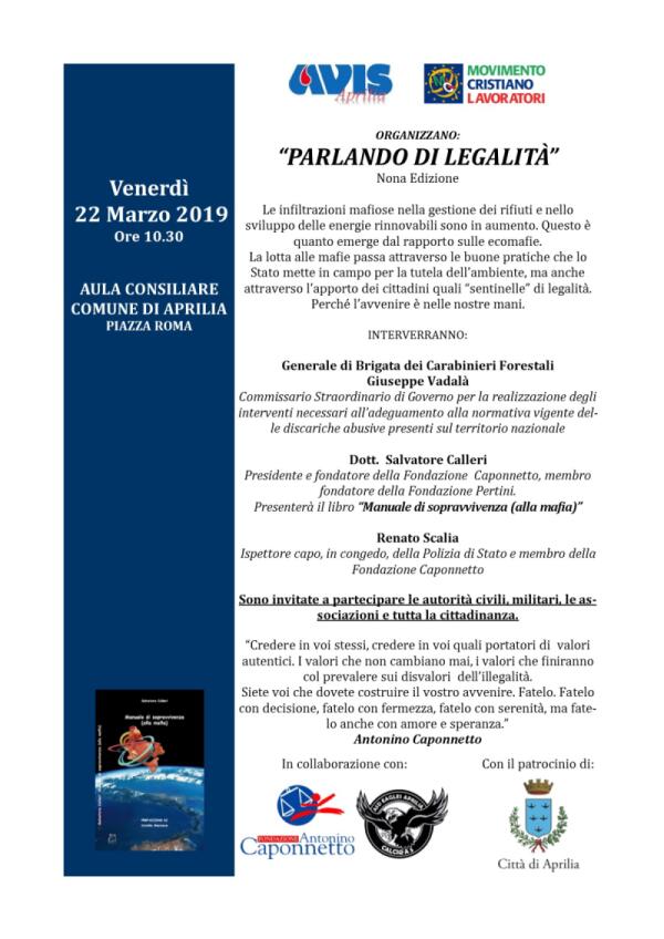 “Parlando di Legalità”: in Aula Consiliare ad Aprilia questo venerdì la nona edizione del convegno.
