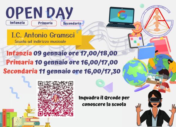 Settimana di Open Day all’Istituto Comprensivo “Antonio Gramsci” di Aprilia. Tre appuntamenti dal 9 all’11 Gennaio.