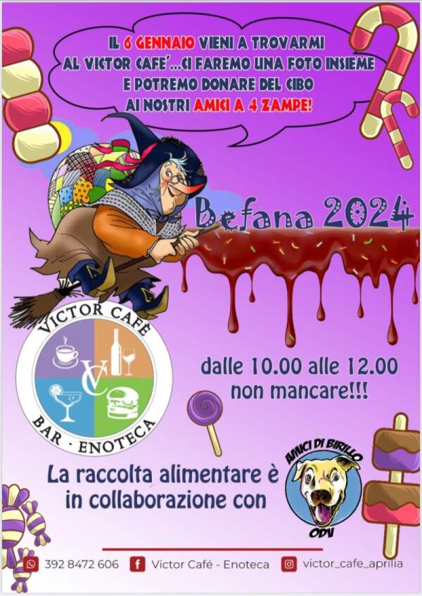 La Befana porta doni anche ai nostri amici a 4 zampe! Raccolta alimentare il 6 Gennaio ad Aprilia con “Amici Di Birillo”.