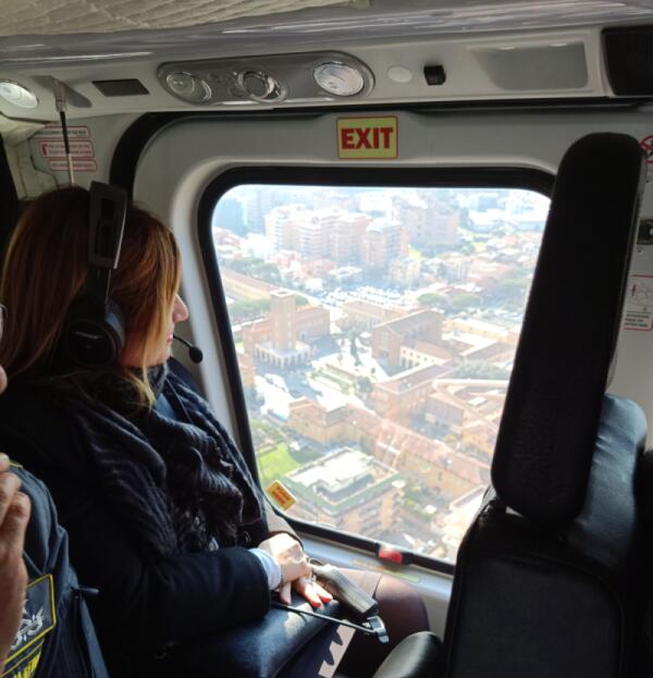 Volo in elicottero sopra Pomezia: la Sindaca Veronica Felici “monitora” la città dall’alto con la Guardia di Finanza.