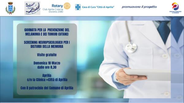 Prevenzione dei tumori cutanei e screening neuropsicologico: 100 visite gratuite questa domenica grazie al “Rotary Club Aprilia Cisterna”.