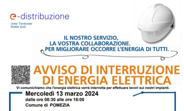 Interruzione dell'energia elettrica mercoledì 13 marzo in alcune zone del Comune di Pomezia.