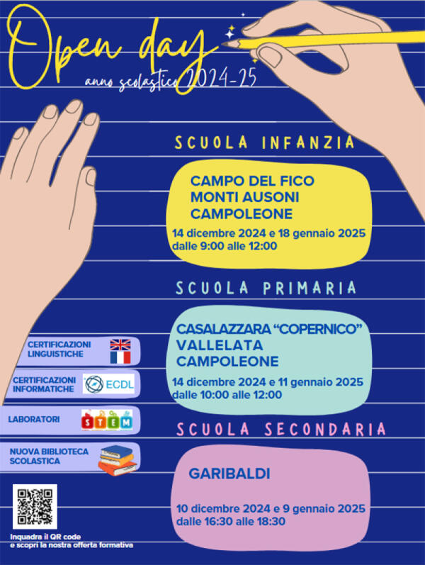 Questo sabato nuovi “Open day” dell’Istituto Comprensivo “Garibaldi” di Aprilia.