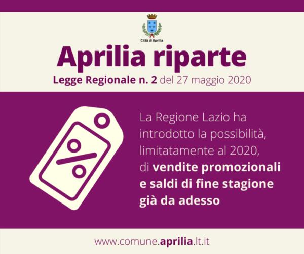 Il Comune di Aprilia: “saldi e vendite promozionali già da adesso”.