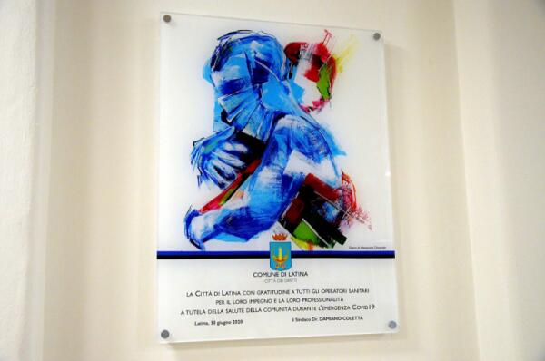 Una targa all’ingresso dell’ospedale di Latina per ringraziare gli operatori sanitari