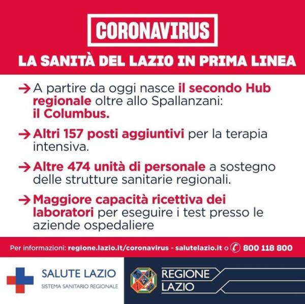 Coronavirus, Regione Lazio aumenta posti letto e chiede più responsabilità ai cittadini