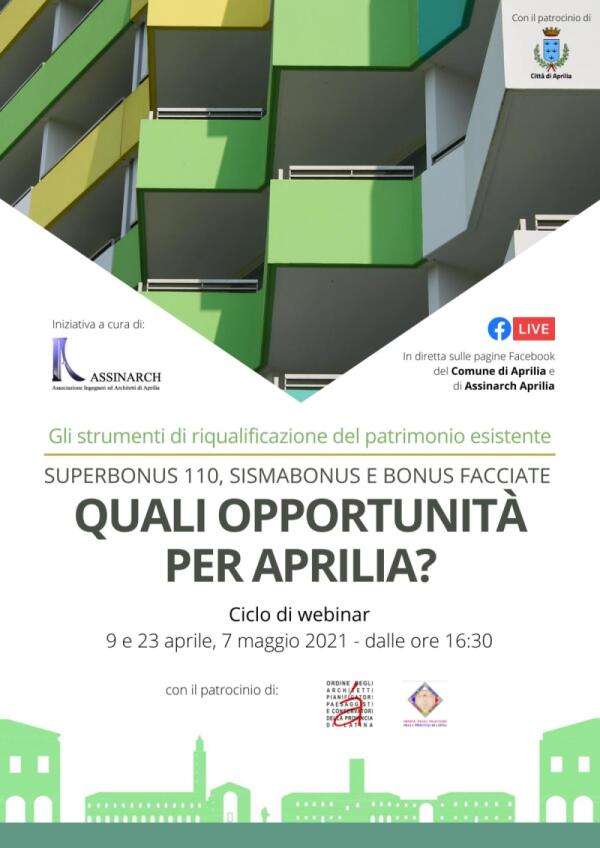 Superbonus, Sismabonus e bonus facciate: ciclo di webinar di Assinarch per comprendere le opportunità per Aprilia