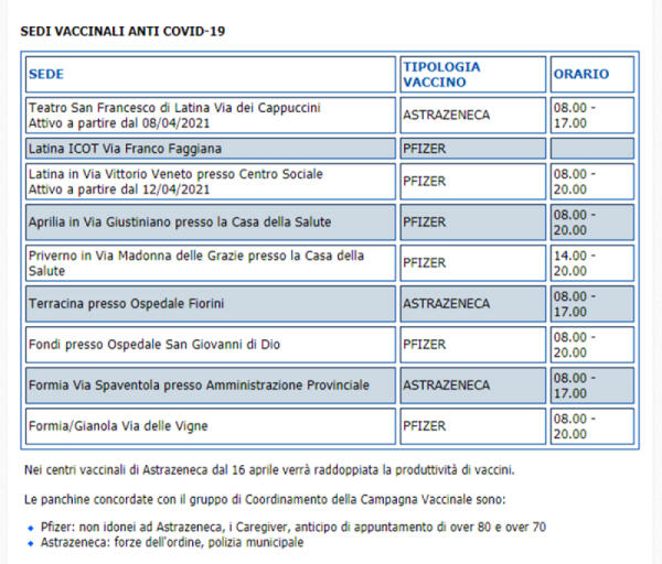 Vaccini, ecco l'elenco delle sedi in provincia di Latina con il tipo di vaccino somministrato