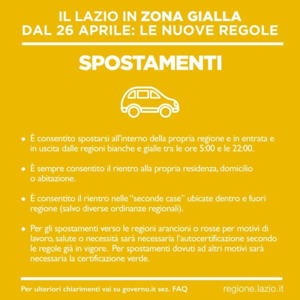 Da questo lunedì 26 aprile il Lazio torna in Zona Gialla. Ecco le regole da seguire. L'INFO-GRAFICA.