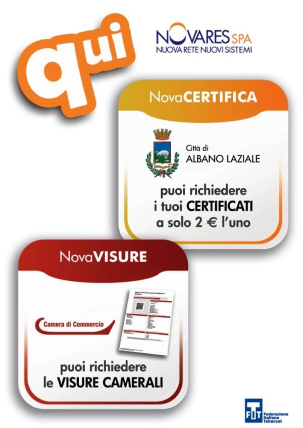 Da lunedì 7 Giugno rilascio dei certificati anagrafici anche nelle tabaccherie di Albano.