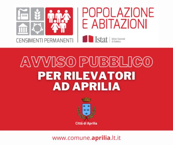 Censimento permanente della popolazione 2021: il Comune di Aprilia pubblica gli avvisi pubblici per la selezione di operatori.