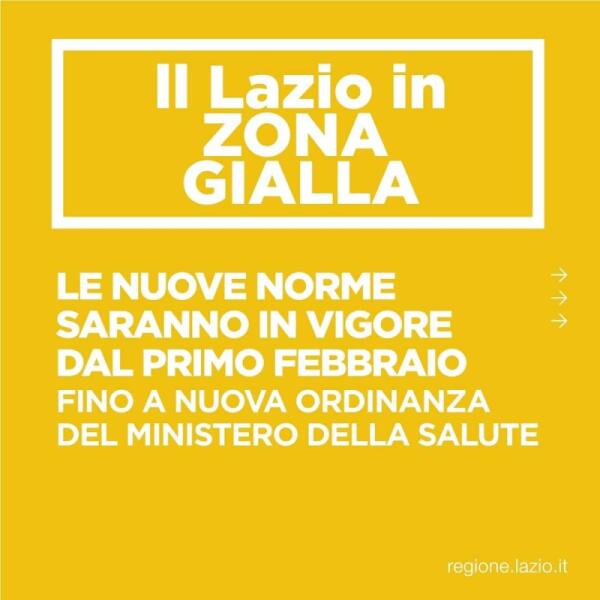 LAZIO IN ZONA GIALLA DA QUESTO LUNEDI' 1° FEBBRAIO.
