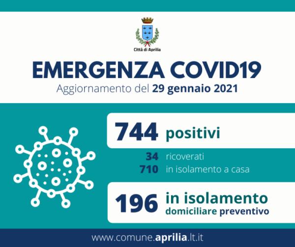 Ad Aprilia sono 744 i cittadini attualmente positivi al Covid. Sale il numero delle persone in isolamento domiciliare preventivo.