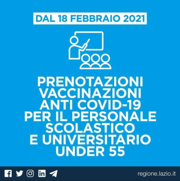 Da questo giovedì nel Lazio al via le prenotazioni per il vaccino per il personale scolastico e universitario.