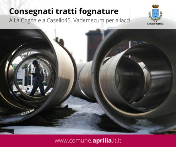 Via alla consegna di nuovi tratti fognari nei quartieri La Cogna e Casello 45, ad Aprilia. Ecco le info per l’iter di allaccio.