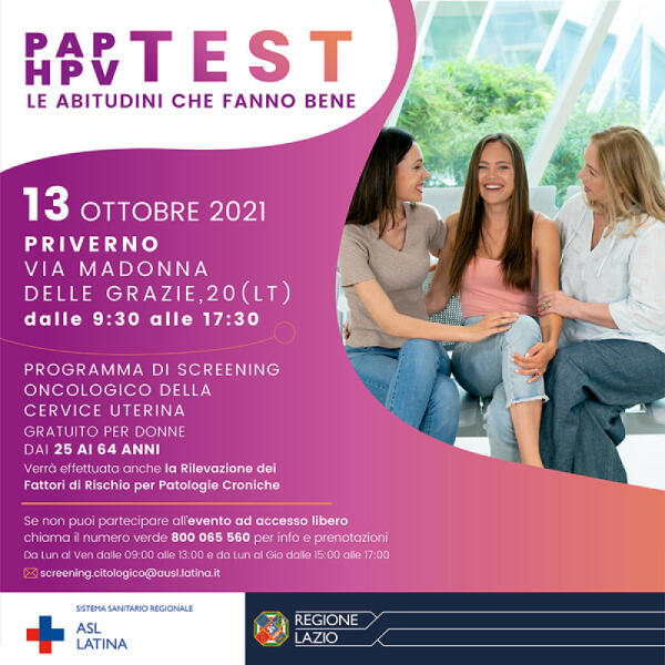 Screening oncologico, giovedì 14 ottobre tappa a Giulianello di Cori