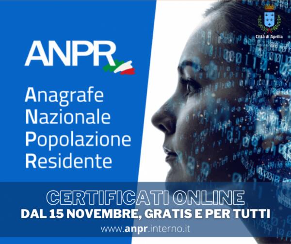 Dal prossimo 15 Novembre certificati anagrafici online anche per i cittadini di Aprilia, senza recarsi in Comune.