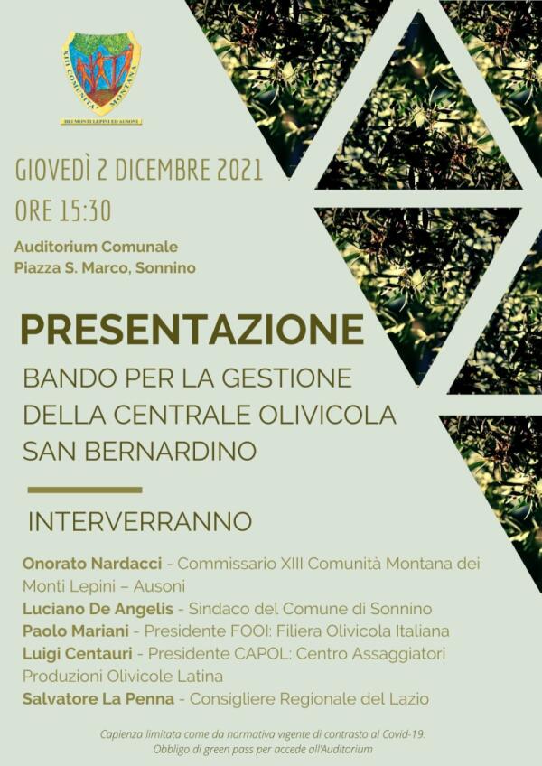 Questo giovedì incontro della XIII Comunità Montana sul bando per la gestione della centrale olivicola di Sonnino.