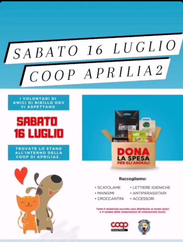 Aprilia - Raccolta cibo e accessori per Gli Amici di Birillo. Tanti i quattrozampe in attesa di adozione