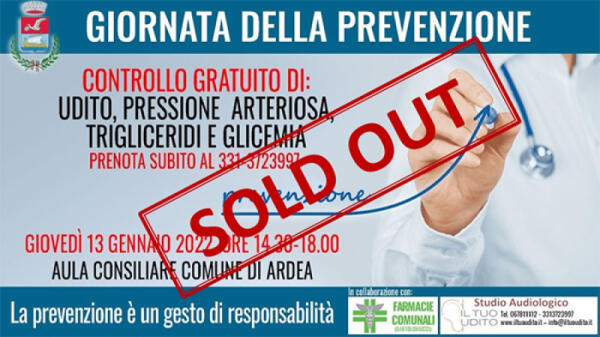 Penotazioni sold out per la giornata di prevenzione programmata per il 13 gennaio presso l’Aula Consiliare di Ardea.