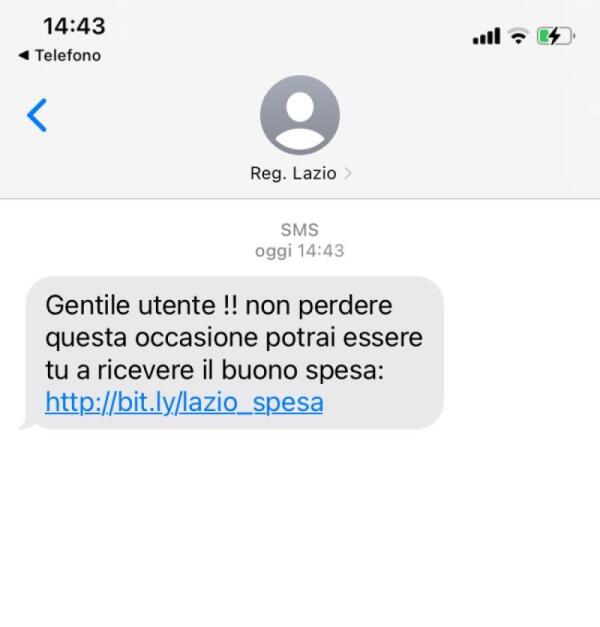 Truffa via sms su buoni spesa, la Regione Lazio: "Non cliccate sul link che si riceve"