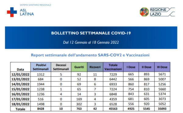 Aprilia, report settimanale sui contagi covid: il trend registra un incremento di 1.194 contagi e un decesso