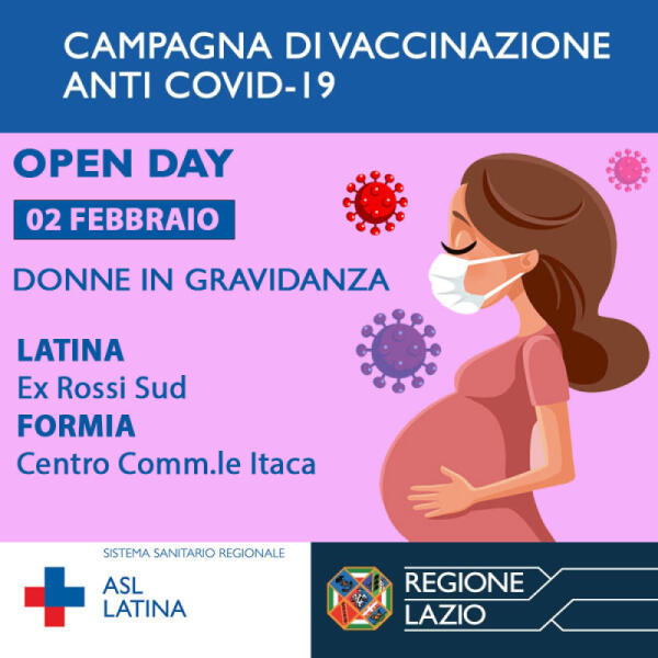 Donne in gravidanza e allattamento: accesso libero ai Centri Vaccinali della Asl della Provincia di Latina e Open Day vaccinale il 2 febbraio.