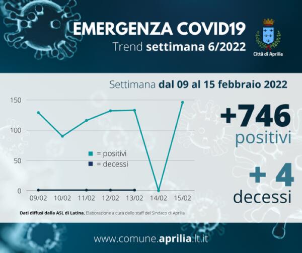 Aprilia - Aggiornamento settimanale sul covid: incremento di 764 contagi, 4 i decessi