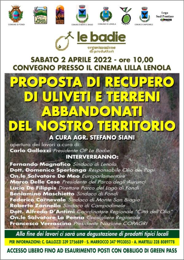 Lenola: sabato 2 aprile incontro sugli oliveti abbandonati. E intanto nasce l'Olio dei Papi
