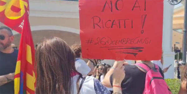 “Il festivo non si tocca”: manifestazione di protesta dei lavoratori ieri all'Outlet di Castel Romano.