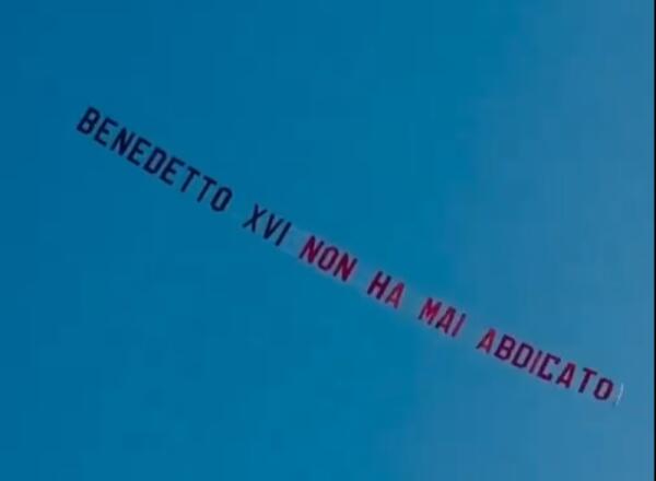 "Benedetto XVI non ha mai abdicato": lo striscione apparso in cielo