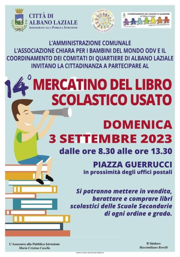 Domenica 3 Settembre ad Albano torna il “Mercatino del libro scolastico usato”.