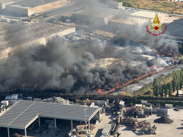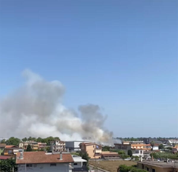 Incendio devasta capannone a Santa Palomba, la nube nera visibile da Aprilia, i Castelli e il litorale