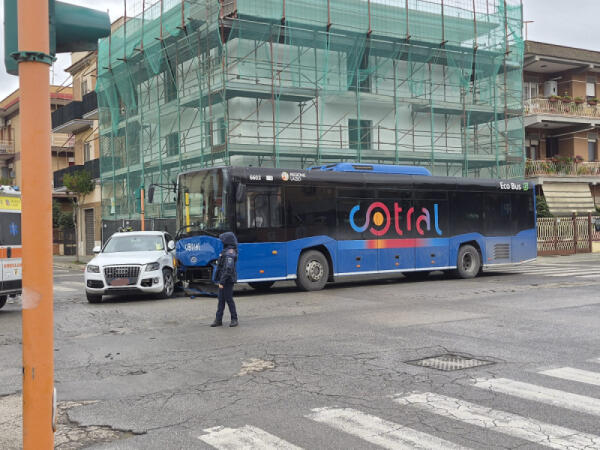 Scontro tra un'auto e bus Cotral ad Aprilia: un ferito