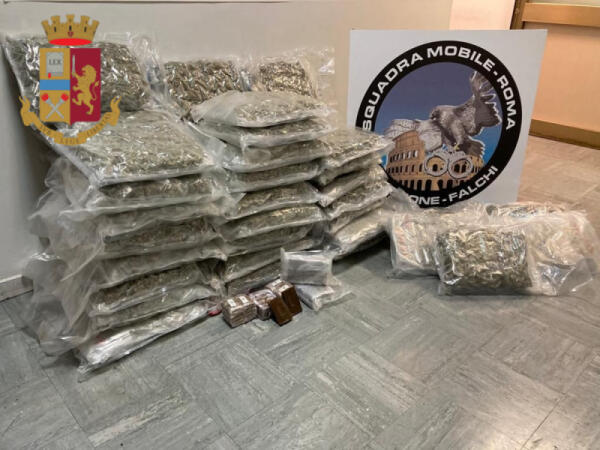 Arrestati dalla Squadra Mobile di Roma 4 italiani e sequestrati oltre 75 chili di marijuana e 7 chili di hashish.