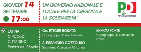 “Un governo nazionale e locale per la crescita e la solidarietà”: oggi a Latina un incontro del Pd.