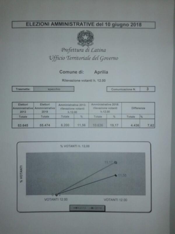 ELEZIONI AD APRILIA - DATI DEFINITIVI DEI CANDIDATI SINDACO E DELLE LISTE