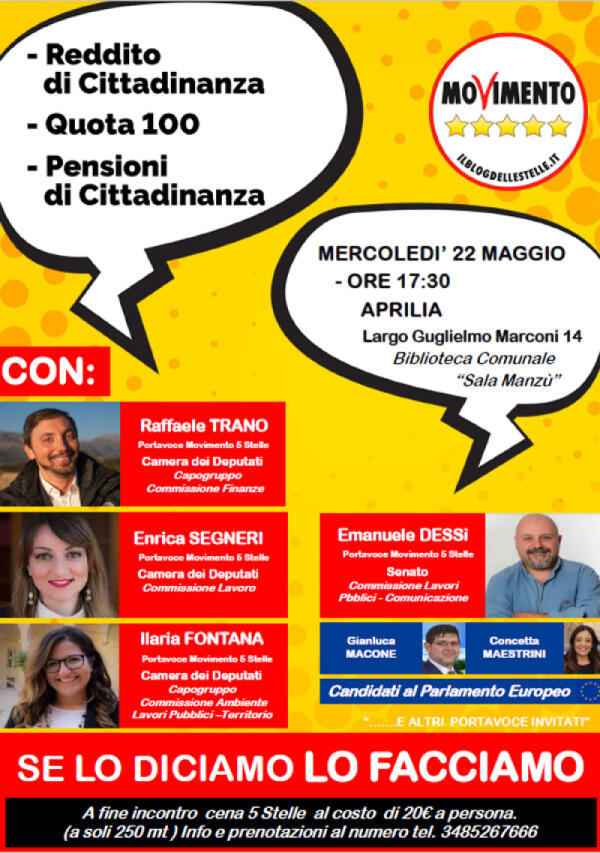 Oggi a Cisterna una tappa del #SeLoDiciamoLoFacciamo tour” del Movimento 5 Stelle.