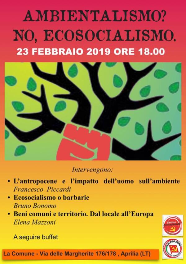 “Ambientalismo? No, Ecosocialismo”. L'incontro pubblico organizzato da "La Comune" di Aprilia